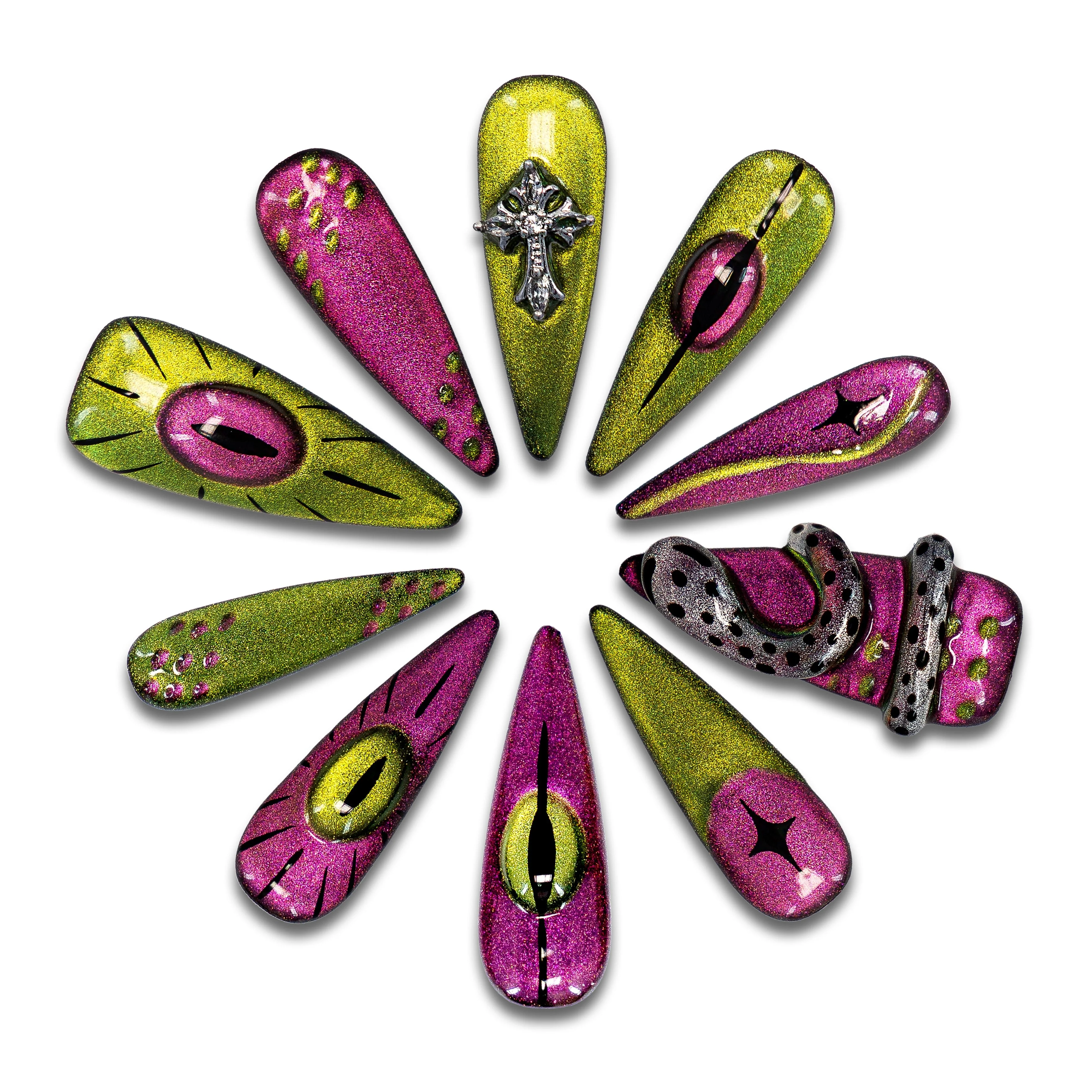 ¡Estas uñas son puro poder slytherin! Llevé las garras verdes a una fiesta temática de Harry Potter y todos pensaron que era Bellatrix disfrazada... hasta mi ex, y huyó. Jaja. Son súper fáciles de poner, duran un montón y el diseño de ojos es inquietantemente genial. Ahora mi gato me tiene miedo. 10/10, las recomiendo para asustar enemigos o simplemente lucir épica.