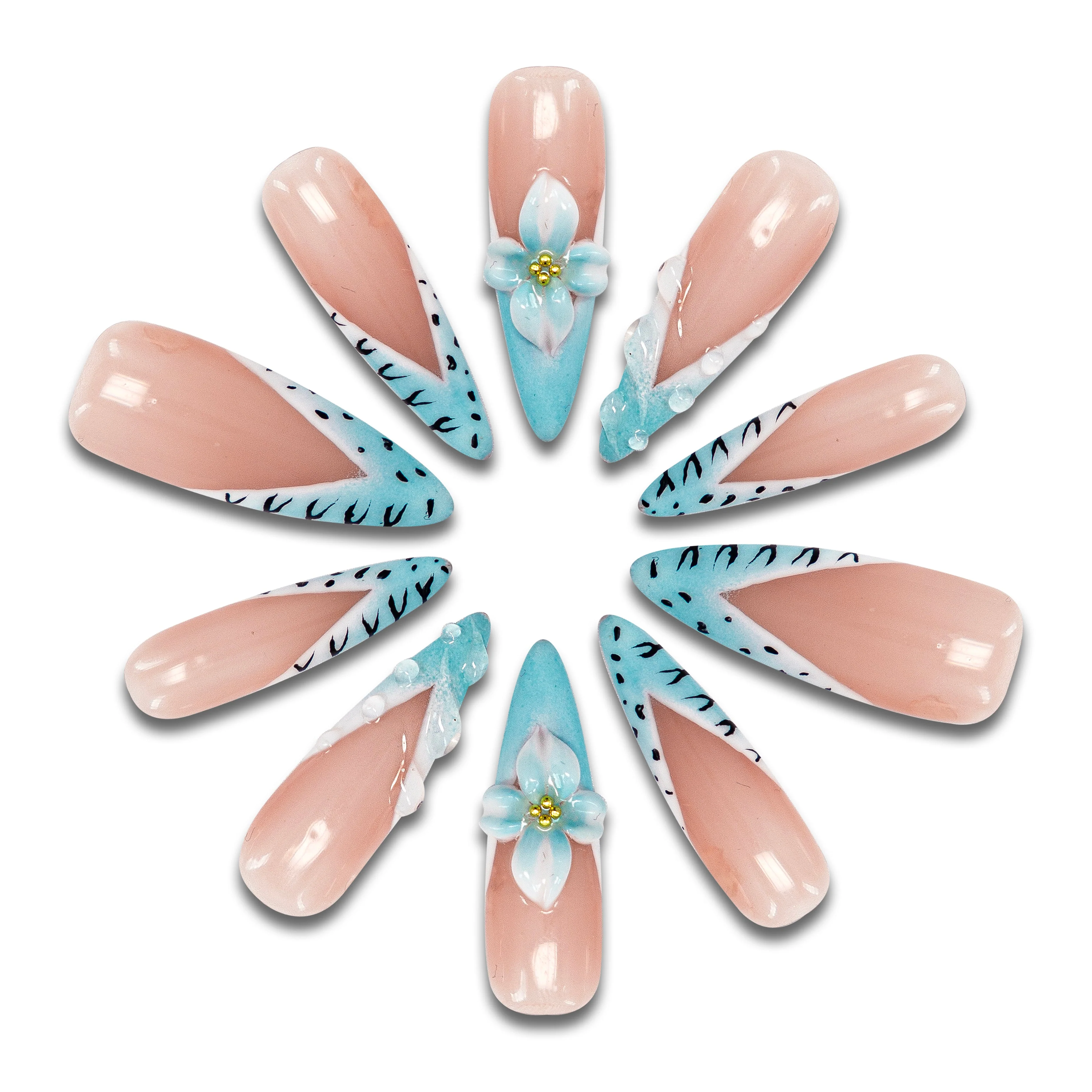 Flower Of The Ocean-Long Stiletto Nails